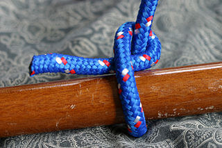 While a bit of a mouthful, this useful knot is used to secure a rope to a fixed object such as a pole. The tail of the rope is wrapped around an object (this is the ‘round turn’) and secured to the standing part with two hitches (the tail end is passed over and under the standing part, twice).